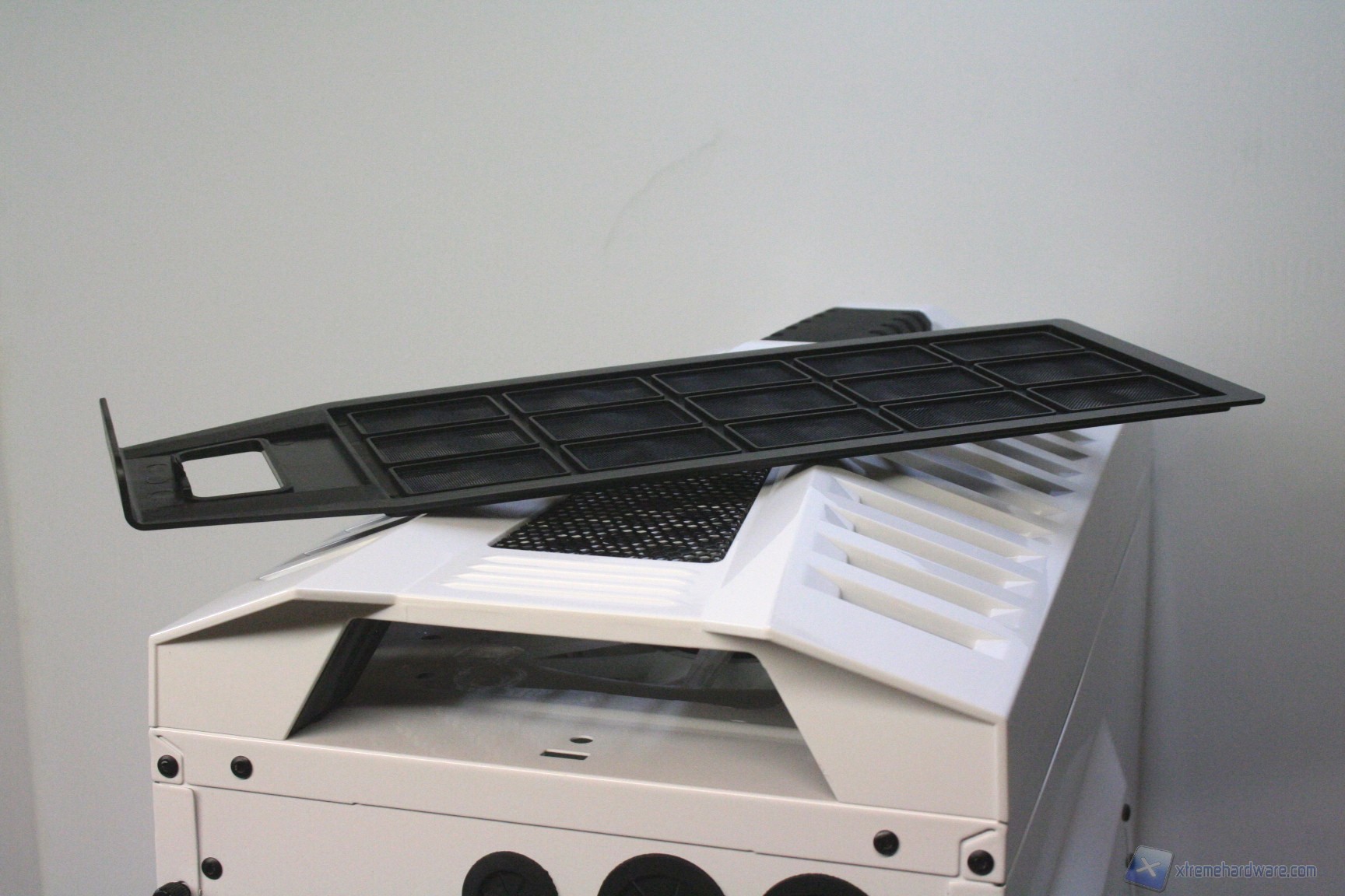 Purtroppo non è presente alcun materiale fonoisolante. Sarebbe stato interessante implementarlo, anche se non è questa la configurazione adatta, per via delle  aperture frontali e laterali.  Le aperture laterali presentano filtri antipolvere a maglie piuttosto larghe e non removibili, purtroppo.