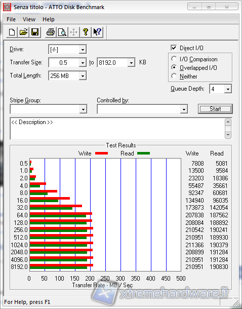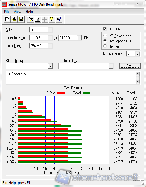 ATTO è un benchmark gratuito che esegue dei semplici test in lettura ed in scrittura in modalità sequenziale adoperando una Queue Depth (file in coda) di 4.