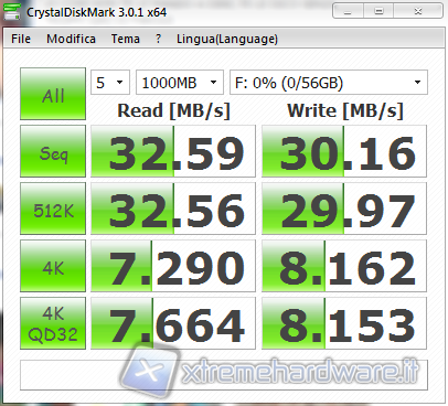 Anche in questo caso le prestazioni non sono ottime, ma comunque adatte all'utilizzo di una periferica di archiviazione di massa; soprattutto la connessione USB 2.0 ha fatto registrare prestazioni al di sotto della media.
