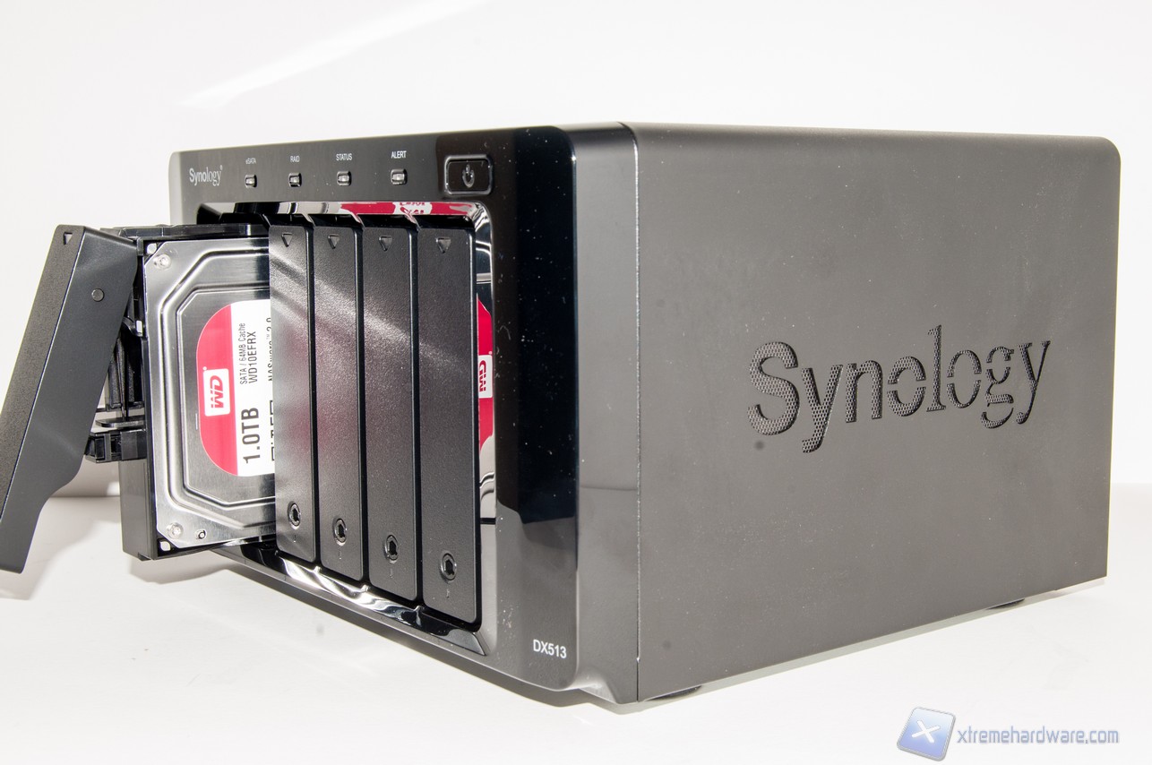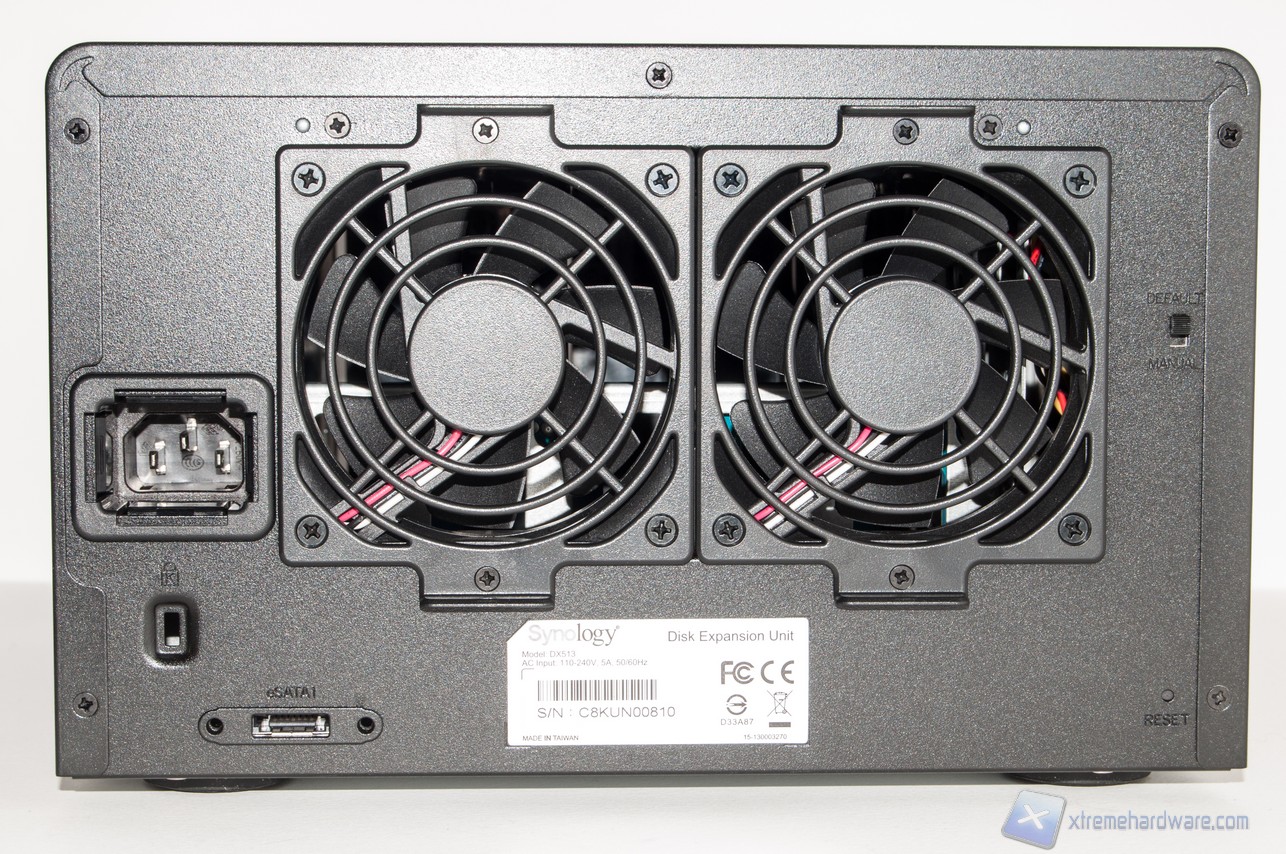 Notiamo come probabilmente la struttura dell'intero cabinet sia la medesima utilizzata per il Synology DS1513+; infatti i due sistemi sono assolutamente identici, eccezion fatta per la mancanza della scheda madre sul lato sinistro nel DX513.